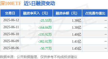 深100ETF:6月12日融资买入245.08万元,融资融券余额1.42亿元